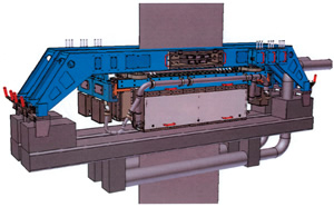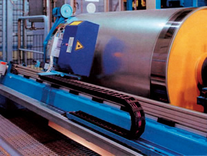 鋼板の表面を磁気、レーザーを使用し検査する検査装置や、エッジ位置を検出し鋼板が蛇行走行するのを抑制する制御装置です。